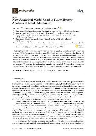 Prof. univ. dr. ing. Sorin VLASE, dr. ing. Adrian Eracle NICOLESCU, Prof. univ. dr. ing Marin MARIN pentru lucrarea New Analitical Model Used in Finite Element Analysis of Solids Mechanics