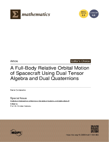 PREMIUL „Gheorghe SILAŞ” acordat: D-lui Prof.univ.dr.ing.Dhc. Daniel CONDURACHE pentru lucrarea (articolul): FULL-BODY RELATIVE ORBITAL MOTION OF SPACECRAFT USING DUAL TENSOR ALGEBRA AND DUAL QUATERNIONS MATHEMATICS