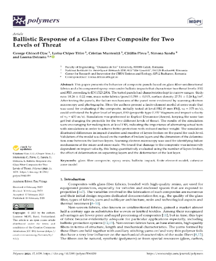 | PREMIUL „Gheorghe Manea” acordat colectivului de autori: Dr. ing. George Ghiocel OJOC, Drd. Ing. Larisa Chiper TITIRE, Dr. ing. Cristian MUNTENIŢĂ, Dr. ing. Cătălin PȊRVU, Dr. fiz. Simona SANDU, Prof. univ. dr. ing. Lorena DELEANU pentru lucrarea (articolul) BALLISTIC RESPONSE OF A GLASS FIBER COMPOSITE FOR TWO LEVELS OF THREAT
